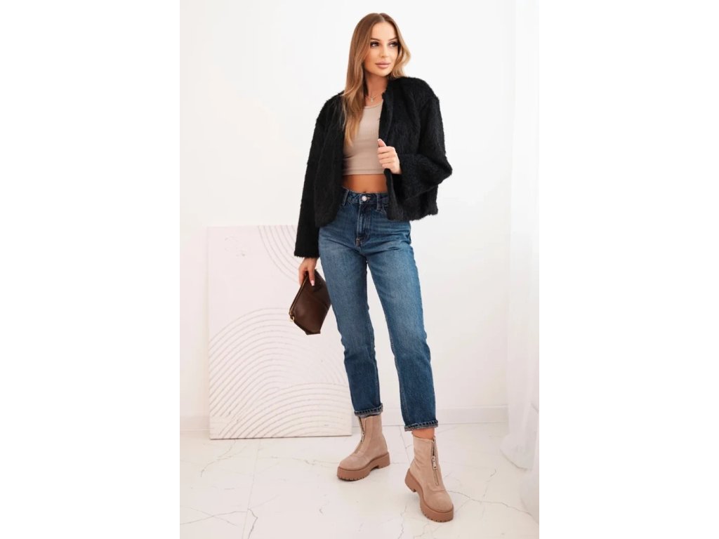 Styl: krátká kožešinová bunda bez zapínání