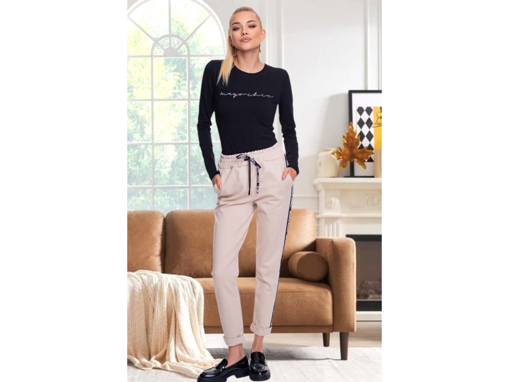 Kalhoty z elastického materiálu, s elastickým pasem, s ozdobným potiskem na boku a stahovací šňůrkou.