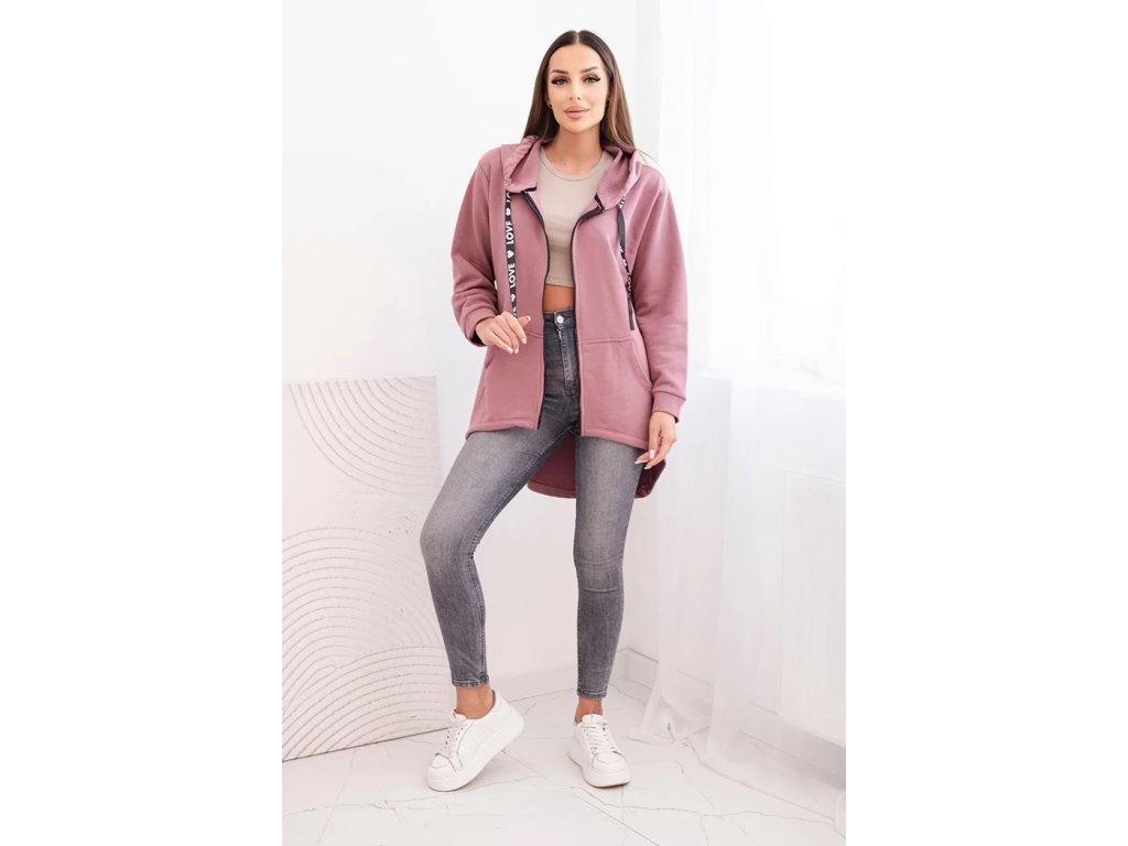 Představujeme vám mikinu s delšími zády a kapucí. Mikina má zapínání na zip a kapsy na přední straně. Díky silnějšímu materiálu je ideální pro chladnější dny. Mikina je vyrobena z vysoce kvalitního materiálu. Velikost je univerzální a bude vhodná pro ženy nosící velikosti S, M nebo L.
