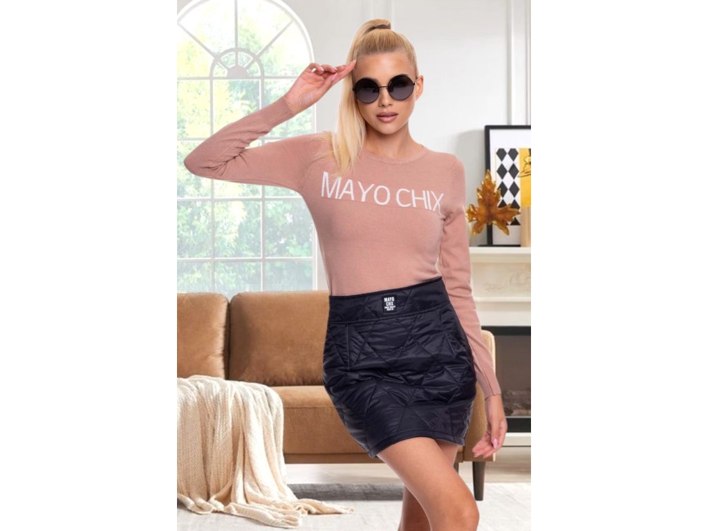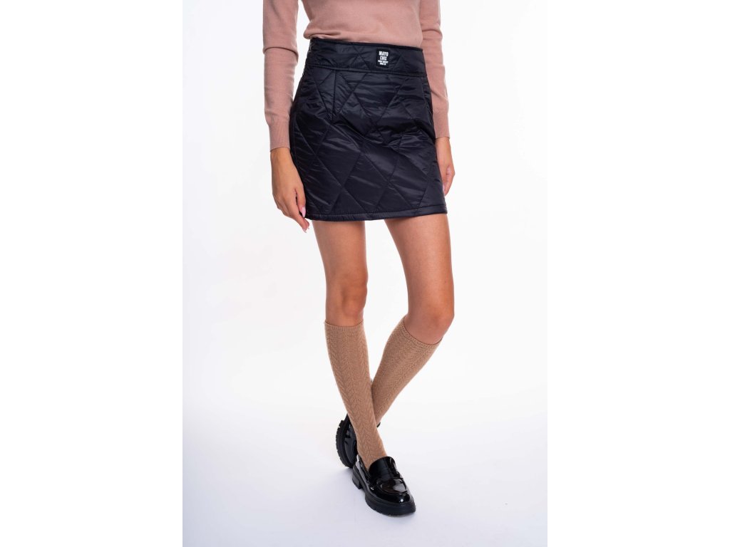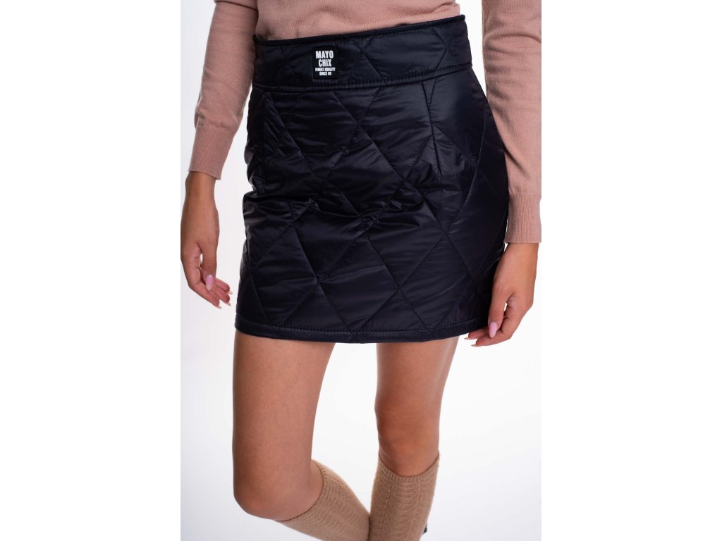 Minisukně z prošívaného materiálu se zapínáním na zip na boku a nášivkou loga značkyMAYO CHIX na pase.