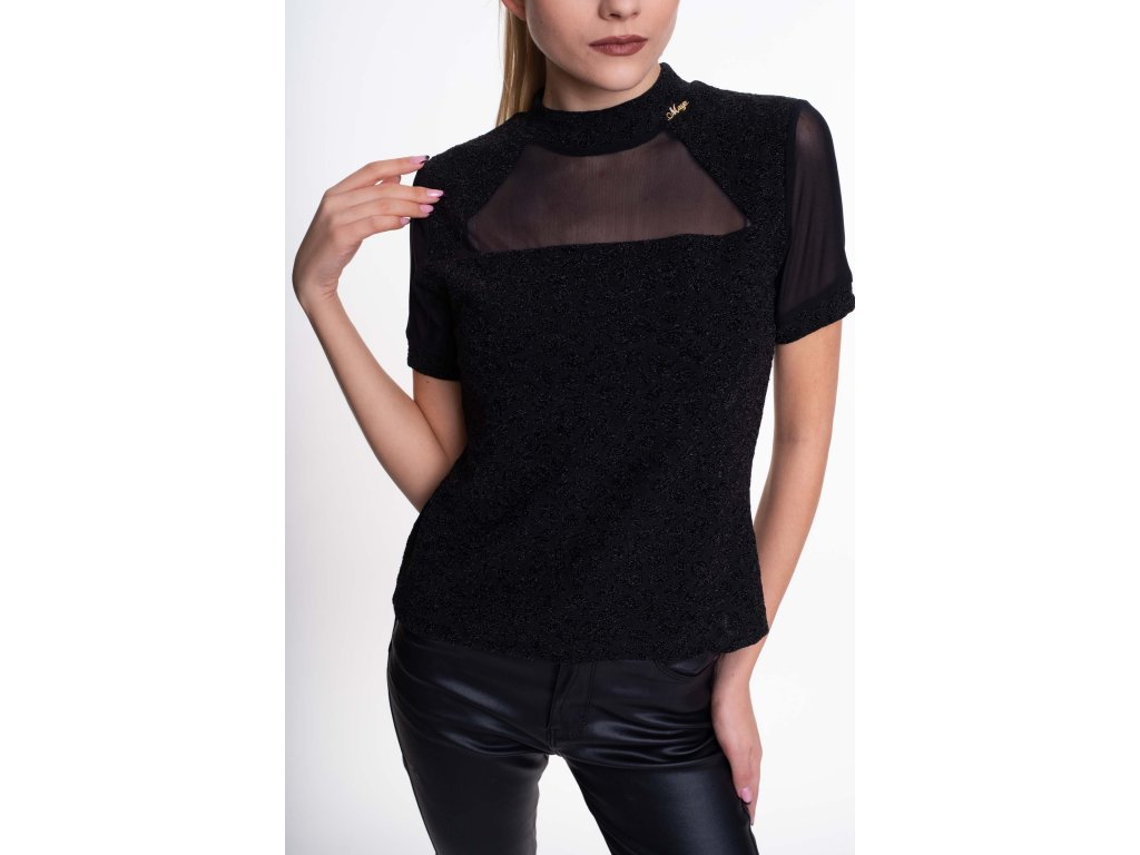 Slim-fit top z elastického materiálu v kombinaci se síťovinou, s malým kovovým logem značky MAYO CHIX.