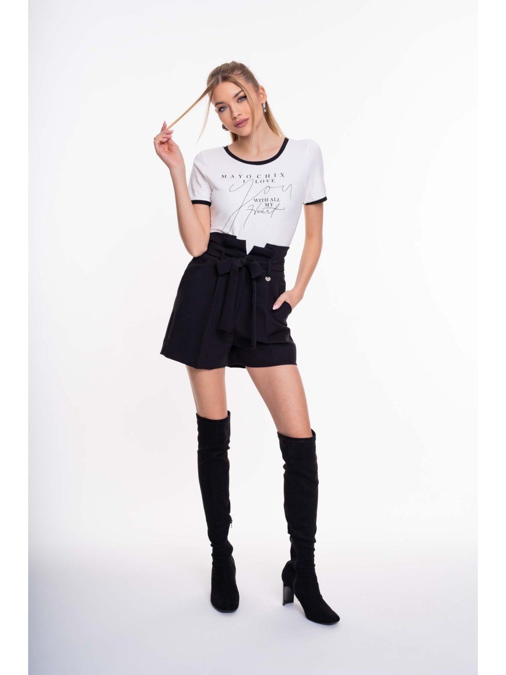 Elegantní šortky s vysokým pasem a zavazováním z lehce elastického materiálu s malým kovovým logem značky MAYO CHIX.